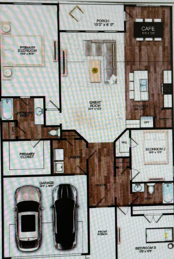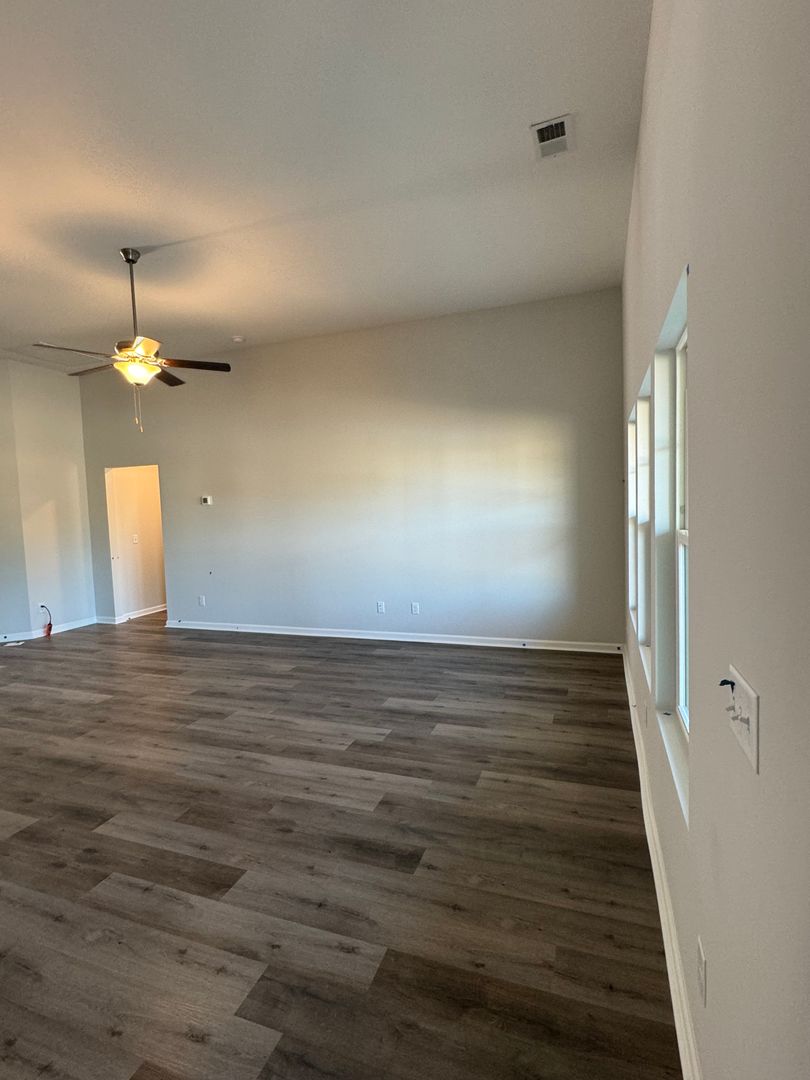 Vinyl plank in kitchen, baths, foyer and laundry -Covered back porch and a double car garage.